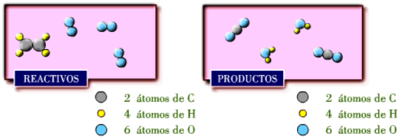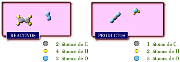 Fíjate en la siguiente ecuación química, y observa cómo se deducen los coeficientes estequiométricos: