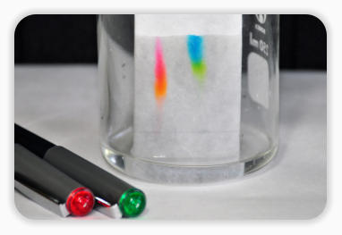 El montaje de esta experiencia es muy sencillo. Llena el vaso con alcohol hasta una altura de unos dos o tres centímetros. Luego corta una tira ancha de papel de cocina, con la longitud suficiente para quedar sumergida en el alcohol y a la vez poder sujetarla en la parte superior del vaso.Pinta un círculo grueso en el papel con el rotulador, a la altura suficiente para que quede por encima del líquido. Finalmente coloca el papel dentro del vaso, sumergiendo su borde inferior y sujetándolo con ayuda del lápiz y el celo. Espera unos 15 minutos y observa qué ocurre con la tinta.