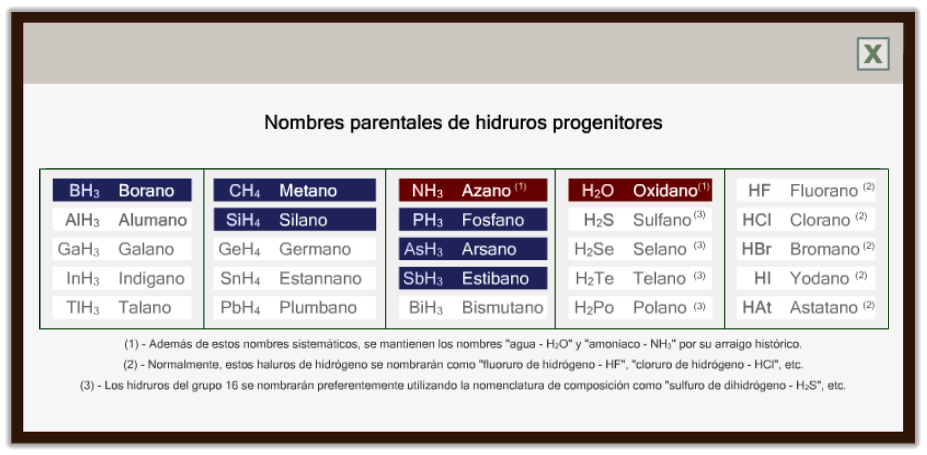 partida para construir los nombres de los hidruros derivados a que dan lugar: