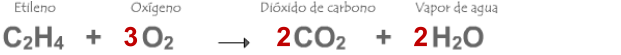 Cada molécula de etileno que reacciona con 3 moléculas de oxígeno