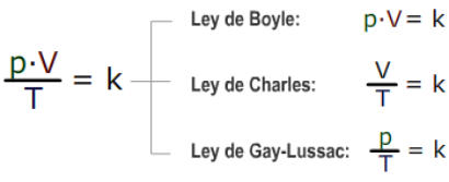 Un   gas   confinado   en   un   recipiente   se   caracteriza   por   tres   magnitudes:   su   temperatura   (T),   la presión   que   ejerce   (p)   y   el   volumen   que   ocupa   (V).   Estas   tres   magnitudes   se   relacionan   entre   sí   a través   de   la   ecuación   de   los   gases   ideales ,   de   la   que   se   deducen   otras   relaciones   no   menos importantes, conocidas como  ley de Boyle , l ey de Charles  y ley de Gay-Lussac .