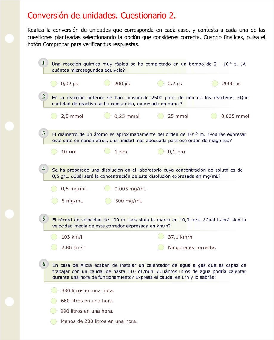 A B C D A B C D A B C A C B D A B C D A B C D Realiza los cálculos necesarios para llevar a cabo las conversiones de unidades que te planteamos a continuación. Piensa, en cada caso, cuál será la respuesta correcta, y cuando finalices, puedes comprobar si lo has resuelto correctamente pulsando sobre el botón correspondiente: Todos los derechos reservados. © LamanzanadeNewton.com.