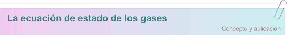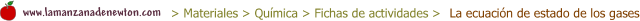 Un gas contenido en un recipiente queda caracterizado por la presión a la que se encuentra, su volumen y su temperatura. Si conocemos los valores de estas magnitudes, podemos calcular la cantidad de gas que hay en el recipiente. Para un gas contenido en un recipiente, se cumple que el producto de la presión por el volumen que ocupa, es igual al producto del número de moles de gas que hay en el recipiente, por la constante de los gases (R) y por la temperatura. PV = nRT. Esta es la llamada ecuación de estado de los gases perfectos, que se puede aplicar a cualquier sustancia gaseosa que se comporta idealmente, lo cual quiere decir que sus partículas se mueven libremente chocando unas con otras y con las paredes del recipiente como dice la teoría cinética, pero sin que existan fuerzas de atracción entre ellas.
